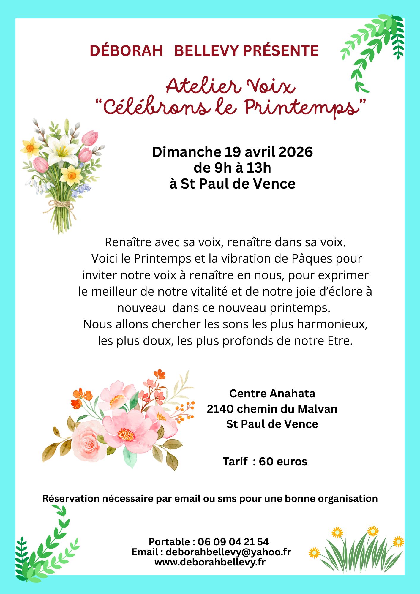 Atelier voix le dimanche 11 janvier 2026 Si une envie de chanté pulse en vous,je vous propose un atelier Voix. Retrouvons nous au centre Anahata le Dimanche Lire la suite
